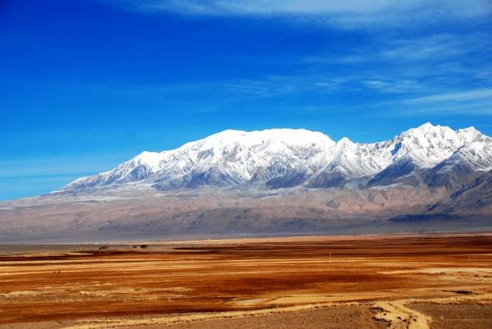 昆侖山西起帕米爾高原,山脈全長2500公里,平均海拔5500~6000米,寬130~200公里,西窄東寬總面積達(dá)50多萬平方公里,最高峰在于青、新交界處,名為新青峰——布格達(dá)板峰,海拔6860米,是青海省最高點。