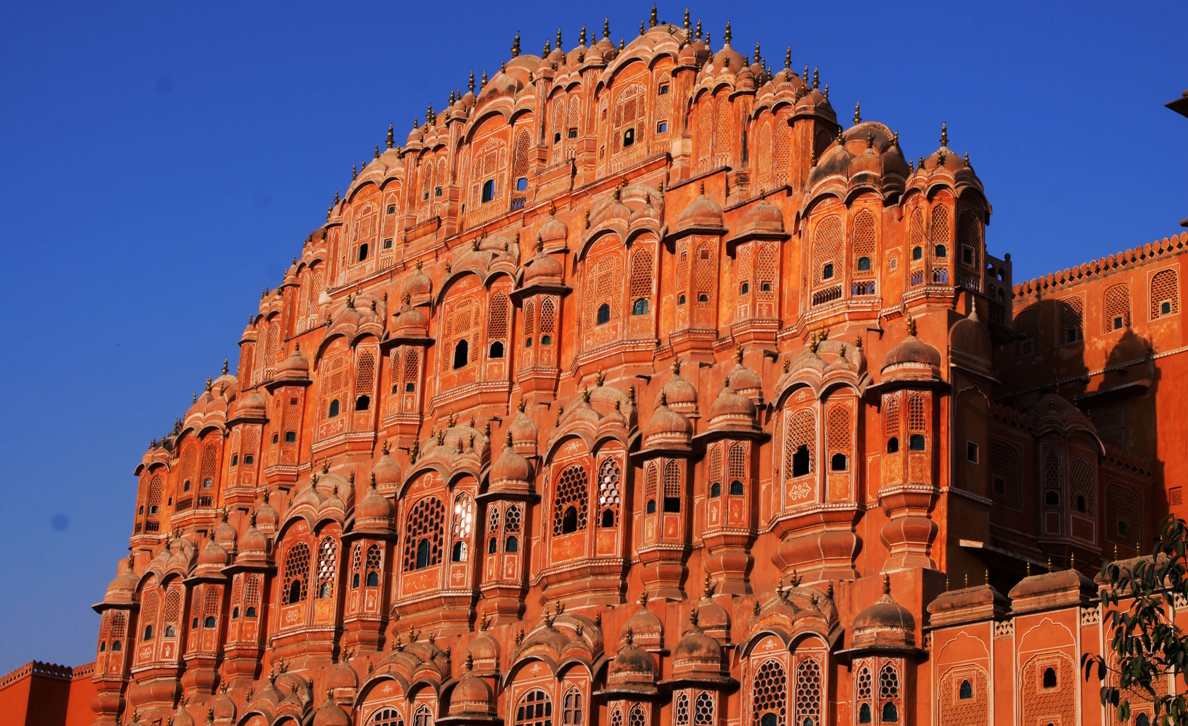 市中心有座純印度風(fēng)格的古建筑臨街矗立,這就是齋普爾的象征——風(fēng)宮。它是一座粉紅色半圓形5層建筑,頂部一座座拱形圓塔,彼此相連,宛如一座塔山。正面有無數(shù)扇用紅砂巖鏤空雕成的八角形窗戶,密如蜂巢,拱形窗楣,雕以各式圖案,十分精美。據(jù)傳,這里是供古代后妃登臨眺望全城景色的。版權(quán)所有山東聊城聊之旅國際旅行社有限公司,轉(zhuǎn)載必究!如今,游客登臨風(fēng)宮,俯瞰全城,但見那片粉紅色的建筑群,川流不息的人力車、自行車和出租三輪車(汽車很少),宛如一條條長龍?jiān)谕裱延蝿?dòng),一頭頭氣宇軒昂的駱駝牽拉著一輛輛古色古香的木車和印度教徒尊敬的“神?!痹隈R路上悠然行走。