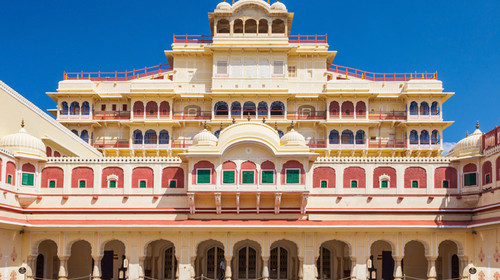 齋普爾王宮保存完好,內(nèi)有10多座富麗堂皇的亭臺樓閣,種有許多奇花異樹,其中以章達(dá)拉宮最突出。宮殿高7層,主體采用了印度教古樸渾厚的建筑風(fēng)格,宮頂門廊又巧借伊斯蘭教拱形穹頂?shù)慕ㄖ囆g(shù),它顯得既質(zhì)樸端莊,又嫵媚壯麗。現(xiàn)在王宮已改為博物館,陳列了許多珍貴的歷史文物。