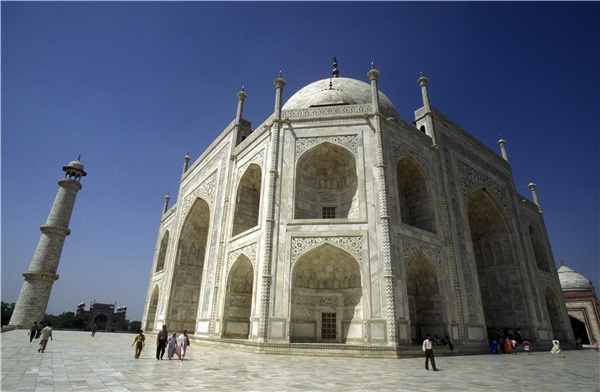 不到長(zhǎng)城非好漢,不到泰姬陵就沒到過印度。泰姬陵(Taj Mahal)位于阿格拉郊外。印度的泰姬陵是世界七大建筑奇跡之一,泰姬瑪哈陵(Taj Mahal),亦稱泰姬陵。是莫臥兒帝國(guó)第5代君主——沙·賈汗(Shah Jahan)對(duì)他心愛的皇后慕姆塔茲·瑪哈爾(Mamtaz Mahal)之愛的見證。泰姬陵的建造背后其實(shí)有一段動(dòng)人的故事,話說沙·賈汗與皇后結(jié)婚19年,皇后在1630年第14次生產(chǎn)中去世,臨終前向皇上要求了4個(gè)承諾,其中一項(xiàng)便是為她建造一座人人可瞻仰的美麗陵墓。于是沙·賈汗便耗資500萬盧比,以2萬名工匠,花了22年時(shí)間,完成了這座震驚世人的大理石藝術(shù)建筑,作為愛妃長(zhǎng)眠之所。1633年,泰姬陵在沙·賈汗選中的印度北部亞穆納河轉(zhuǎn)彎處的大花園內(nèi)開始動(dòng)工興建。此處位于亞穆納河下游,十分空曠,沙賈汗可以從河上游的阿格拉城堡上遠(yuǎn)遠(yuǎn)地望見。建筑學(xué)和珠寶最受沙賈汗喜愛,因此,他選用大理石建造泰姬陵,并以十分精巧的手藝在大理石上鑲嵌無數(shù)寶石作裝飾。本國(guó)以及波斯、土耳其、阿拉伯巴格達(dá)的建筑師、鑲嵌師、書法師、雕刻師、泥瓦工共計(jì)兩萬多人參與了泰姬陵的建設(shè)。此工程選用了本國(guó)的大理石,中國(guó)的寶石、水晶和玉,巴格達(dá)和也門的瑪瑙,西藏的綠寶石,斯里蘭卡的寶石,阿拉伯的珊瑚等。泰姬陵隨著季節(jié)、時(shí)間的變化而變化。黎明時(shí)分,泰姬陵呈現(xiàn)出粉紅色,似綻放的花朵;中午,泰姬陵呈白色,光芒耀眼;傍晚,泰姬陵呈灰白色,色澤柔和似珍珠。在圓月退去、星斗閃爍天氣里,泰姬陵可呈現(xiàn)出白色、虎珀色、灰色、金黃色。在陰云密布的天氣里,泰姬陵似冬季空中漂浮的薄霧中的海市蜃樓忽隱忽現(xiàn)。建筑特色:泰姬陵占地甚廣,由前庭、正門樓、莫臥兒花園、陵墓主體以及兩座清真寺所組成。版權(quán)所有山東聊城聊之旅國(guó)際旅行社有限公司,轉(zhuǎn)載必究!陵墓主殿四角都有圓柱形高塔一座,特別的地方是每座塔均向外傾斜12度,若遇上地震只會(huì)向四方倒下,而不會(huì)影響主殿。無論在任何角度望去,純白色的泰姬陵均壯麗無比,造型完美,加上陵前水池中的倒影,就像有兩座泰姬陵互相輝映,難怪被譽(yù)為世界七大奇觀之一。泰姬陵建筑集中了印度、波斯的建筑藝術(shù)特點(diǎn),整個(gè)布局完美、和諧,是建筑史上不可多得的杰作。