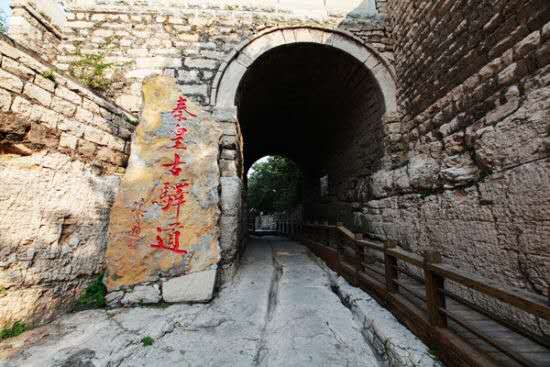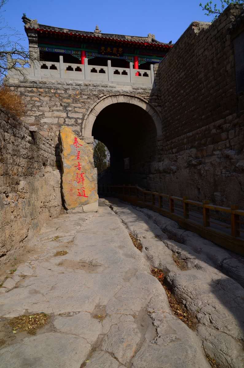 這條古驛道的歷史可追溯到秦代,曾是古代燕趙通向秦晉的交通要隘,控制冀晉兩省的咽喉所在。秦始皇統(tǒng)一中國(guó)后,修筑了以咸陽(yáng)為中心的驛道,井陘古驛道就是當(dāng)時(shí)的主干線上的重要一段。這里關(guān)山環(huán)立,地勢(shì)險(xiǎn)要,是山西、陜西通京的交通要沖,為歷代兵家必爭(zhēng)之地。公元前229年秦將王翦伐趙之戰(zhàn);公元前204年漢將韓信以少勝多的背水之戰(zhàn);公元756年唐將郭子儀、李光弼殲滅叛將史思明、平定安史之亂;公元1900年清將劉光才打響抵抗八國(guó)聯(lián)軍的庚子大戰(zhàn)等等戰(zhàn)例都發(fā)生在這里。秦皇古驛道風(fēng)景區(qū)內(nèi)保留了原始的秦時(shí)馳道,而且可以清晰的在路面上看到古時(shí)車輪碾壓而成的一尺多深的車轍印記,這是“車同軌,書同文”的唯一歷史見(jiàn)證。