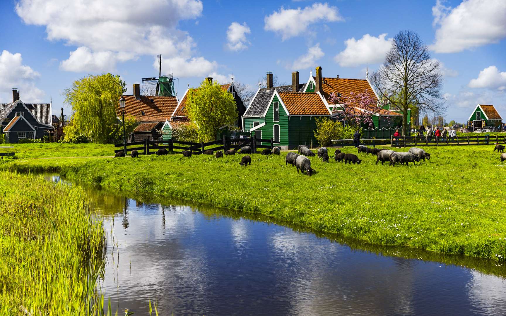 荷蘭桑斯安斯風(fēng)車村(Zaanse Schans)是位于阿姆斯特丹北方15公里。古老的建筑生動描繪了17、18世紀(jì)的荷蘭生活。真實的房子,古老的造船廠,制作木鞋的表演,還有風(fēng)車,是有居民居住、開放式的保留區(qū)和博物館。