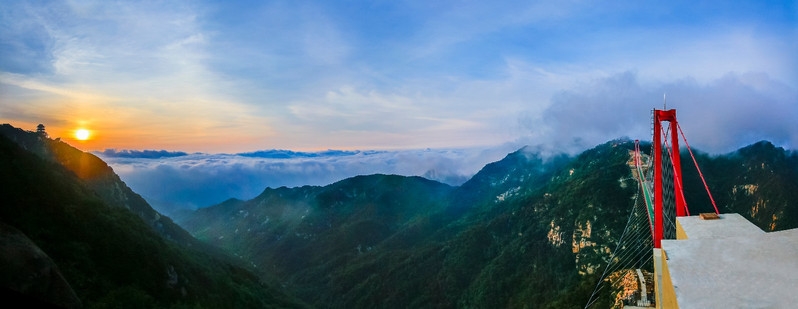 棧道始于虎踞龍盤石,全長2999米,由懸崖棧道和森林木棧道組成,懸崖棧道長1999米,森林木棧道長1000米,為江北第一大棧道。棧道險峻處如飛龍凌空,游走于絕壁深壑,氣勢磅礴,令人驚心動魄,震撼不已;平緩處若臥龍蟠曲,奇松怪石,美不勝收,令人目不暇接;蜿蜒處似游龍出沒,林海掩映,鳥語花香,令人流連忘返。心隨境遷,行走在棧道的不同位置,會有截然不同的感受,有龍行天下之豪邁,有平步青云之喜悅,有臨風(fēng)嘯傲之胸襟,有閑庭漫步之悠然,有坎坷曲折之感慨……都會讓人心有所動,深感不虛此行。