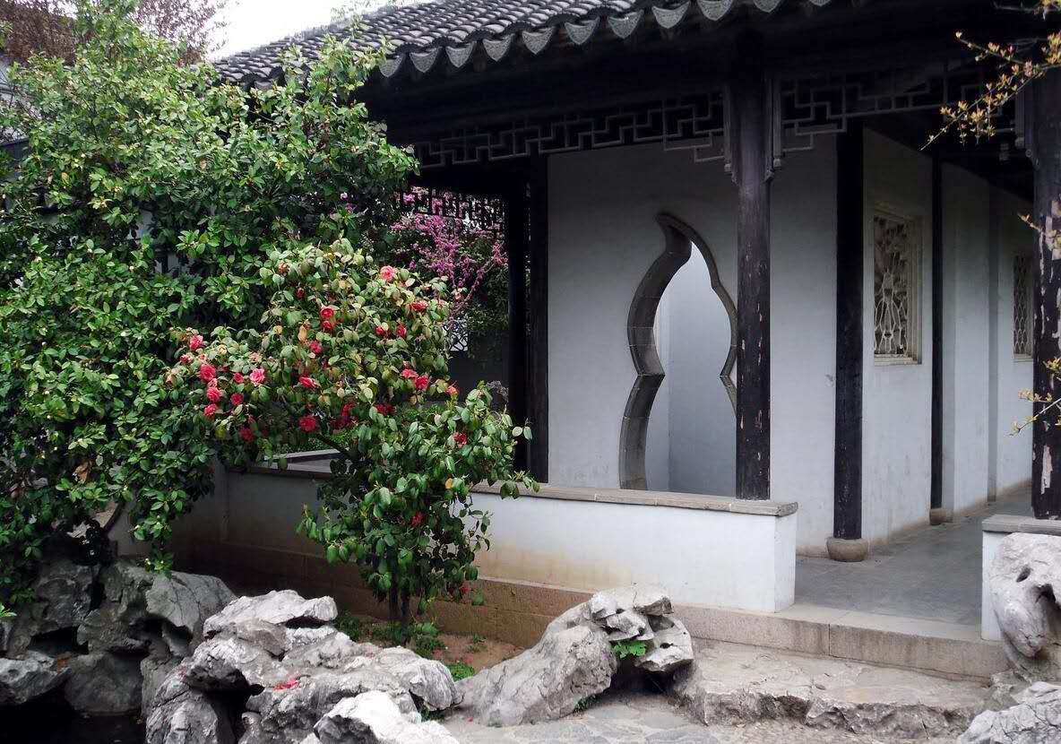 從尚賢堂右邊門穿越一條幽長的備弄,即進入以古廣玉蘭為中心的春景區(qū)。