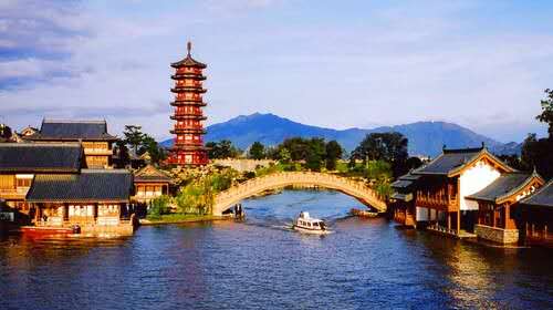 山環(huán)水繞的木龍湖,整個景區(qū)周邊自然景觀優(yōu)美,不僅有得天獨厚的漓江、疊彩山優(yōu)美的自然生態(tài)環(huán)境,還有歷史久遠的古宋城等眾多歷史文化遺跡,歷史文化遺跡豐富。所以,在以宋城歷史文化主題公園為主的木龍湖景區(qū)總體設計方案時,通過對現(xiàn)狀環(huán)境、歷史文化背景做全方位深入調分析和在進行多次學習考察的基礎上,聽取了各方意見,不斷完善、修改、深化設計方案,確定木龍湖景區(qū)在加強對歷史文化遺跡和自然生態(tài)環(huán)境保護的基礎上,版權所有山東聊城聊之旅國際旅行社有限公司,轉載必究!有限度地開發(fā)利用風景文化旅游資源,達到人與自然的共生的基調。木龍湖景區(qū)總體布局以中國傳統(tǒng)造園思想為指導,結合建筑范圍內地形地址條件,以史料、《清明上河圖》等宋畫為基本素材,就形成了宋代建筑特征。木龍湖景區(qū)建設突出了自然山水與歷史文化相融合的特點,在木龍湖北側依托宋代東鎮(zhèn)門、宋城墻遺址等歷史人文景觀,建設包括宋街、半邊街、古宋城、木龍塔、木龍夜泊、淺橋魚影、聽荷軒等具有宋代建筑氣息的古建筑群落的景點,木龍塔是以上海宋代的龍華塔為藍本建造的,高45米。在木龍湖南側與疊彩山之間建筑以觀賞林地、草地、溪流、瀑布為主的生態(tài)景觀帶。