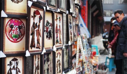 從南大街走到書(shū)院門(mén),忽然好像一下子安靜了下來(lái)。路兩邊,高大的槐樹(shù)后面,紅漆格子門(mén)半開(kāi)著,大大小小的湖筆從門(mén)檐上面垂下來(lái),一條浸透墨香的路便向遠(yuǎn)方鋪展開(kāi)來(lái)約570多米,濃郁的古風(fēng)撲面而來(lái)。兩邊鱗次櫛比地集中了碑帖拓片、名人字畫(huà)、印章印譜、文房四寶等100多家店鋪,在二、三層雕欄樓閣上,掛著一色的黑底金字牌匾,書(shū)寫(xiě)著文萃閣、醉書(shū)軒、聚看齋、皓月宮等店名。這里的店鋪門(mén)面既不像江南商號(hào)那樣纖巧秀麗,也不同于北京大柵欄那樣富麗堂皇。而是古樸敦厚,門(mén)面很少有繁瑣的裝飾,牌匾、楹聯(lián),還有深狹的門(mén)道,顯示了一種儒雅祥瑞、深藏若虛的氛圍。商家所售的商品有各種旅游紀(jì)念品、工藝品等。然而墨香的古文化街最能體現(xiàn)特色的商品當(dāng)屬種類(lèi)繁多的文房四寶、書(shū)法字幅、國(guó)畫(huà)卷軸、碑帖拓片、藍(lán)田美玉以及古老的樂(lè)器“塤”。