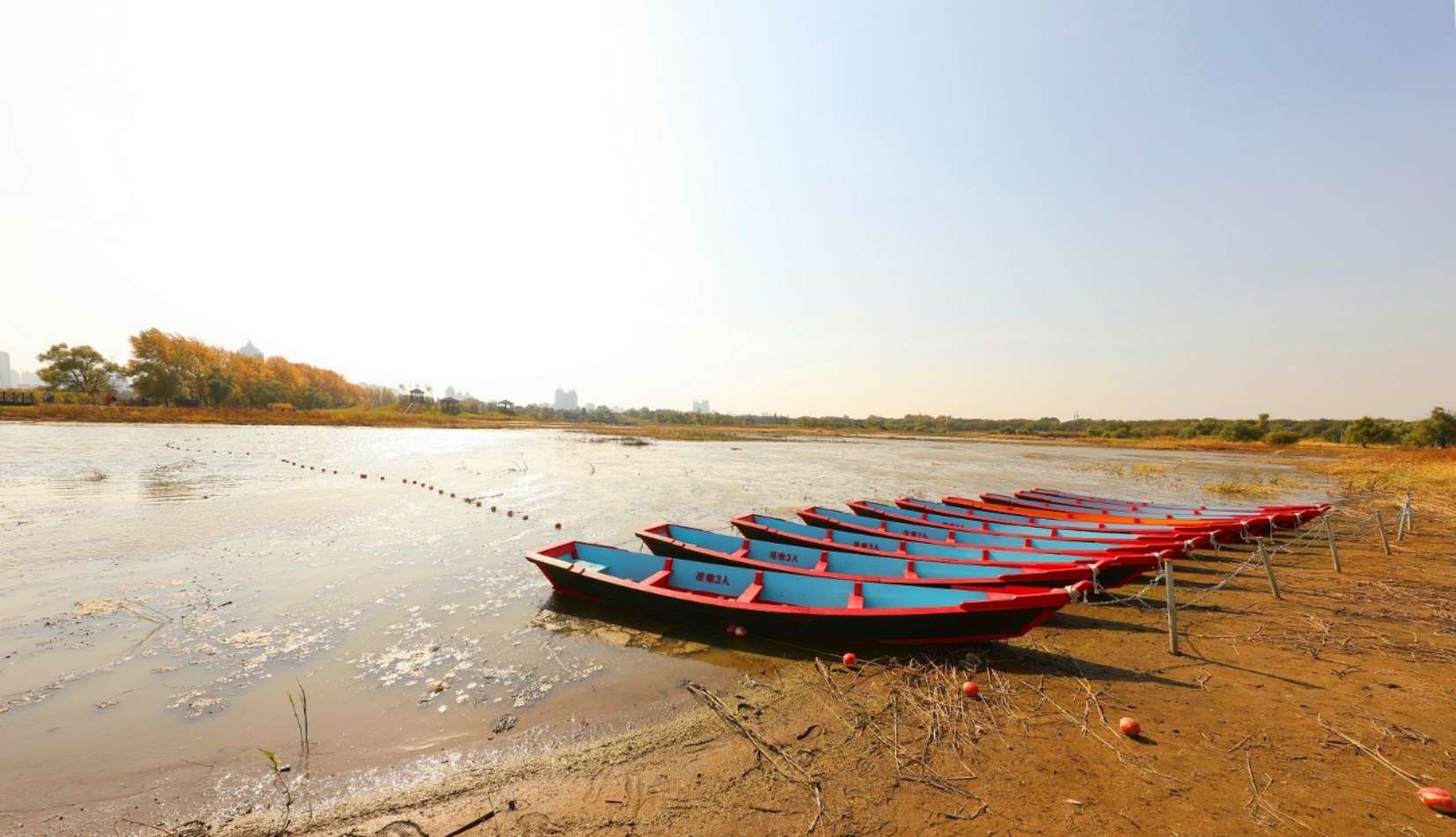 白樺林:白樺林與紅柳林以路相隔,一側(cè)是紅柳綠波,一側(cè)是疏密有致的白樺林。白白的枝干,排列有序的屹立在路旁。