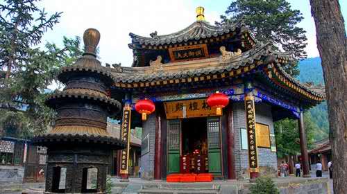占地三千平方米,計(jì)有殿堂僧舍二十余間。過牌樓,進(jìn)山門,見院內(nèi)的山門背后立有石碑兩塊:一塊立于明萬歷二十年仲秋,上書“五臺(tái)山重建佛頂庵碑記”;另一塊立于清康照歲次辛未仲秋,上書“青峰頂造像建亭記”。看來,黛螺頂又名青峰頂,佛頂庵是黛螺頂寺宇的另一種稱法。寺內(nèi)的第一座殿為站壇殿,殿座六角臺(tái)基,上部是六角重檐攢尖頂。作為殿建,在五臺(tái)山寺廟群中別具一格。殿內(nèi)主供站壇佛,釋迦牟尼佛不是常見的趺坐形樣,而是站立于佛壇之上。又站壇佛亦稱旃檀佛,因原來的站佛是用旃檀木雕成,故名。第二座大殿為五文殊殿,正面三間,側(cè)面兩間,外加半間寬的四面出廊,單檐歇山頂。殿內(nèi)供的就是集五座臺(tái)頂五種文殊法像于一室的五文殊,正中殿壇上,中間供中臺(tái)孺童文殊,左側(cè)供北臺(tái)無垢文殊,右側(cè)供南臺(tái)智慧文殊,左側(cè)殿壇供東臺(tái)聰明文殊,右側(cè)殿壇供西臺(tái)獅子吼文殊。版權(quán)所有山東聊城聊之旅國際旅行社有限公司,轉(zhuǎn)載必究!自從黛螺頂供五文殊以來,小朝臺(tái)的盛譽(yù)聞名遐邇。大殿前立的石碑,就是清乾隆御制碑,石碑背面的乾隆親筆題詩,其字跡的結(jié)構(gòu)豐滿圓潤,筆法剛勁流暢,堪稱書法藝術(shù)珍品。第三座后殿面闊五間,懸山_頂,殿階臺(tái)下長(zhǎng)有一松一柏,松在北端,柏在南端,圍粗均在九尺左右,即是乾隆詩中所稱的“階下千年不老松”。松柏樹高大直立,無有彎曲,望去有如戟指藍(lán)天,為寺宇生色不少。