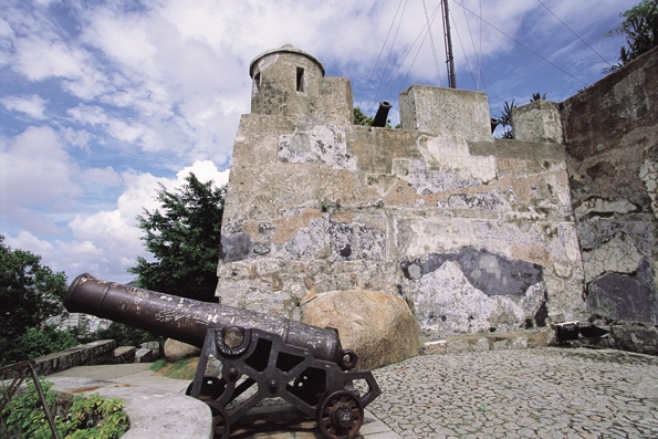 媽閣炮臺(又名圣地亞哥炮臺,位于西灣西端)建于一座歷史悠久的古堡上,距今350多年歷史。澳門政府在公元1622年前修筑炮臺,以防守澳門的入口水路。