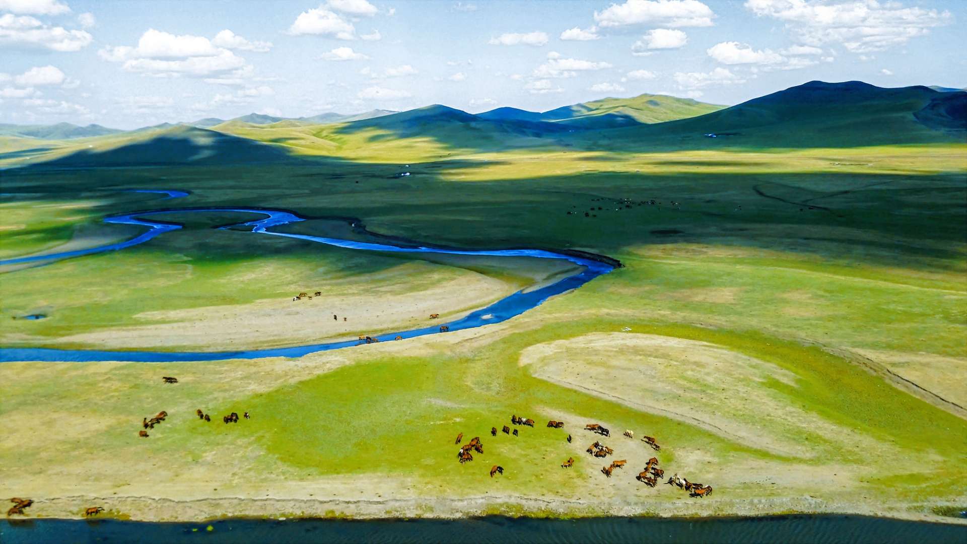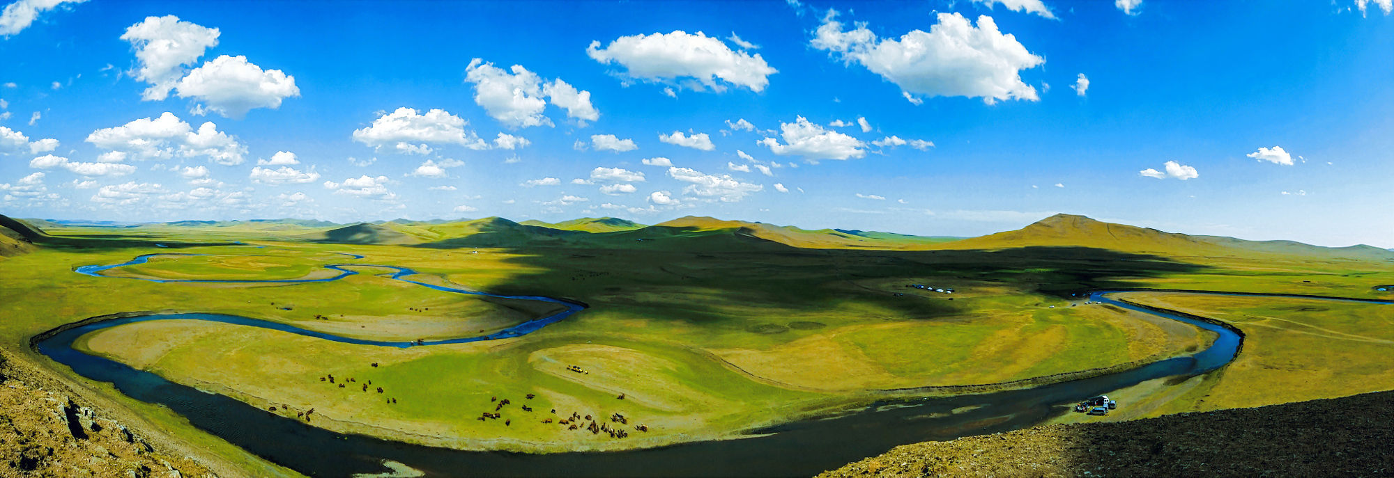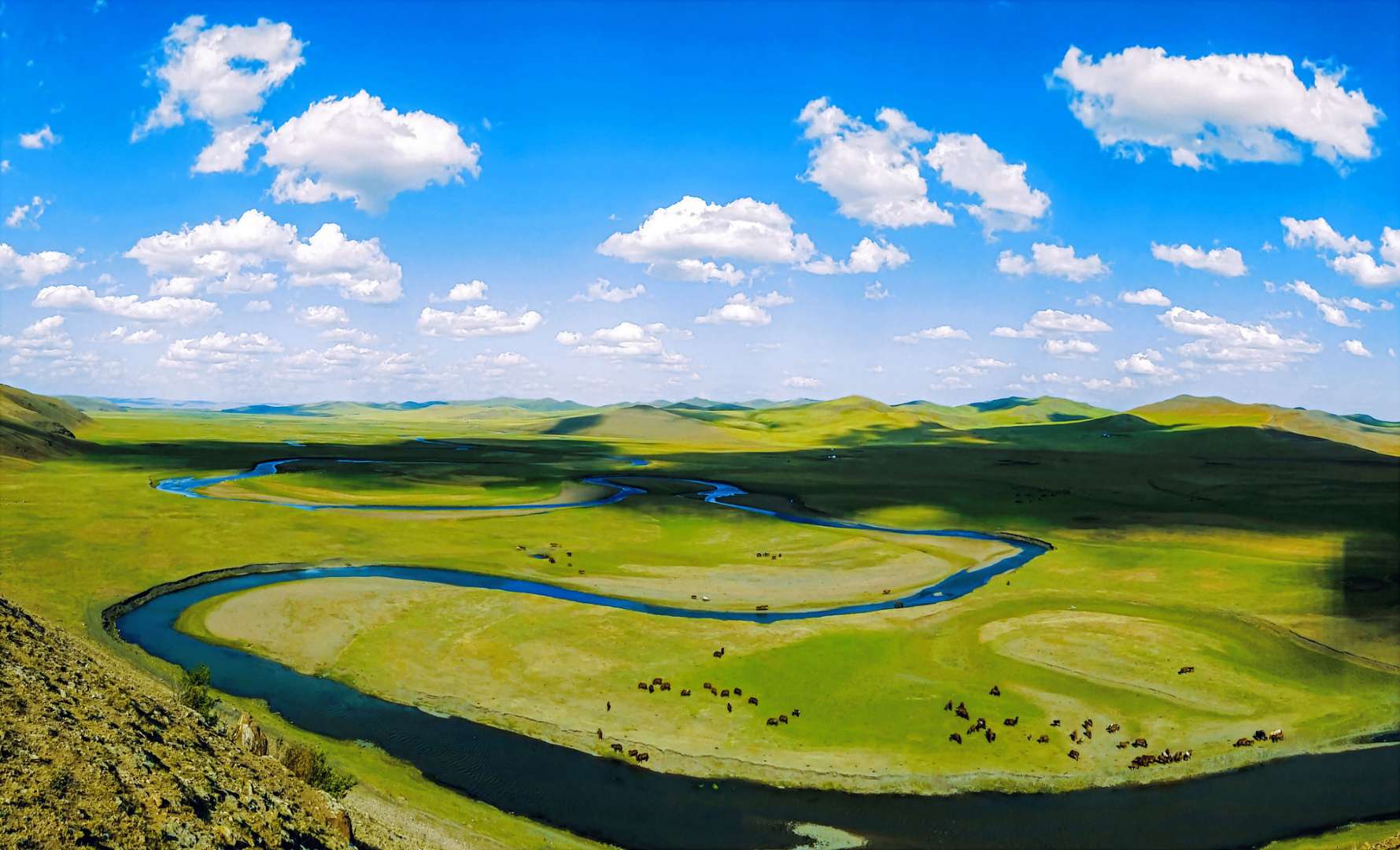 藍天白云下,鑲嵌在一望無際的綠色草原上的莫日格勒河,顯得是那樣嬌柔嫵媚,在這種純自然的優(yōu)美環(huán)境中,騎上駿馬,駱駝,或是坐在勒勒車上,沿著彎彎曲曲的莫日格勒河溜上一圈,再走進蒙古包里喝上幾碗用莫日格勒河水和鮮奶煮就的奶茶,嘗一嘗香氣四溢的手把肉,同牧民聊聊家常,聽牧民講述動人的傳說和故事,那該有多么愜意啊.