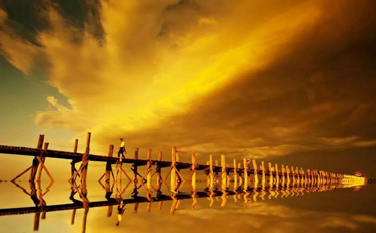 烏本橋(U Bein Bridge),在緬甸的Amarapura(阿馬拉布拉)古城境內(nèi),橫跨東塔曼湖(Taungthaman),長達1200米,是世界上最長的柚木橋。