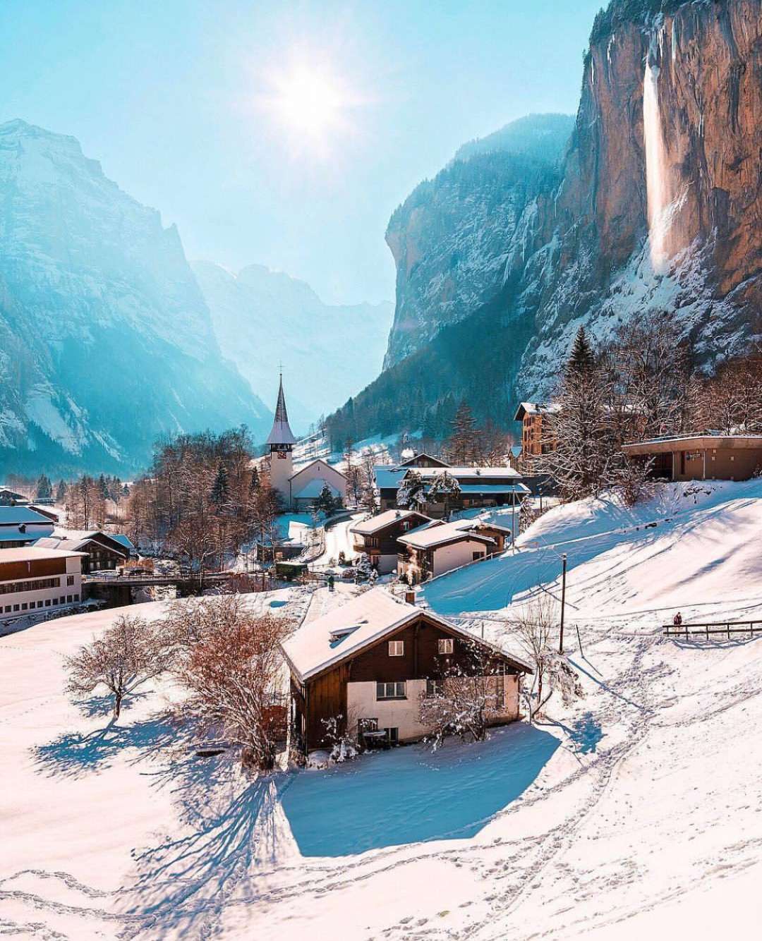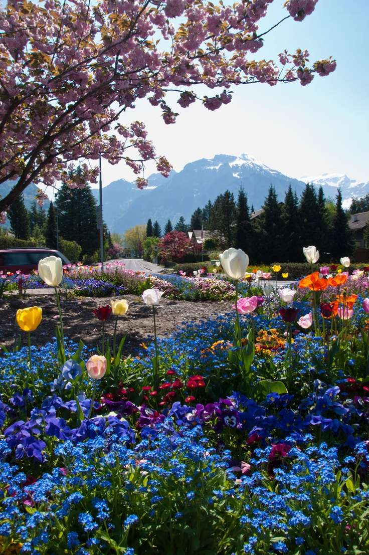 因特拉肯(INTEL‘LAKEN,即“湖間”之意)屬伯爾尼州,距離伯爾尼市約50公里,地處圖恩湖和布里茵茨湖之間,海拔只有568米,是瑞士著名的風景區(qū)之一。這里群山環(huán)抱,綠色草場廣闊開敞,瑞士著名的少女峰終年白雪冠頂,倒映綠色湖中,遠山近水,湖光瀲滟,置身此地,如在畫中。