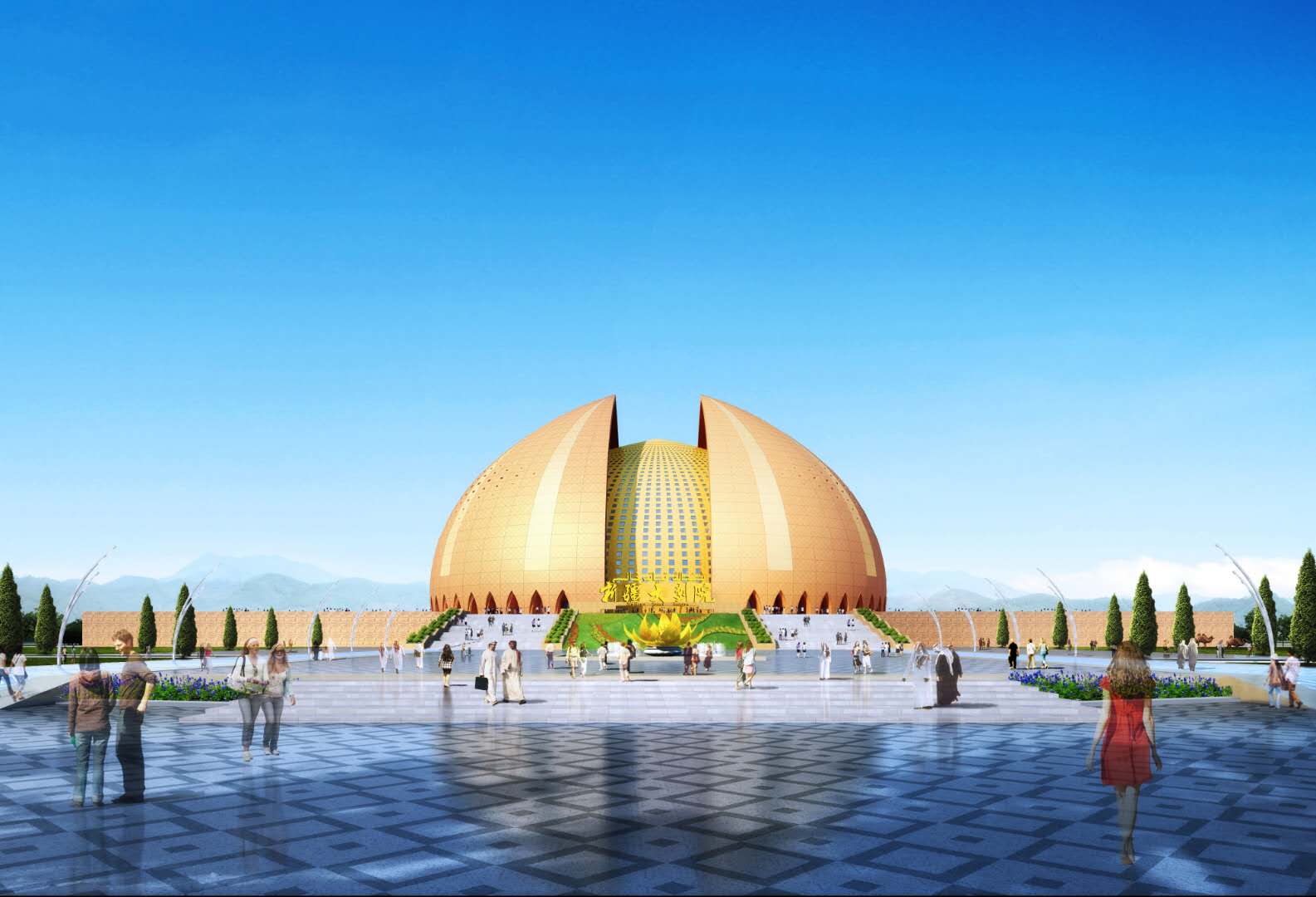 絲綢之路文化藝術中心為絲綢之路·印象城第一批啟動項目,位于烏昌交匯處屯河西岸,總投資達17.6億元,占地面積280畝,總建筑面積10萬平方米。版權所有山東聊城聊之旅國際旅行社有限公司,轉載必究!以新疆大劇院為主體,包括新疆大劇院、音樂廳、 多功能劇場、會展中心、旅游購物中心、 絲綢之路博物館、絲綢之路旅游推廣中心等相關配套設施,是一個集文化、演藝、旅游、休閑于一體的大型文化景觀建筑。這朵璀璨綻放的金色雪蓮,蘊含著激昂旋律,流淌著曼妙樂章,傳遞著跨越文化、語言和習俗的力量。