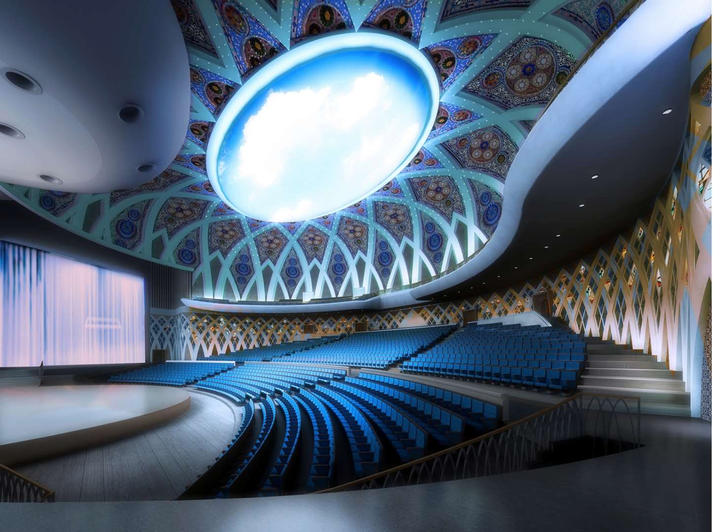 同時,大劇院內部包括若干個超大型展廳、音樂廳、多功能商務廳和數(shù)字影院,實現(xiàn)了商務活動和文化藝術展示的完美統(tǒng)一。