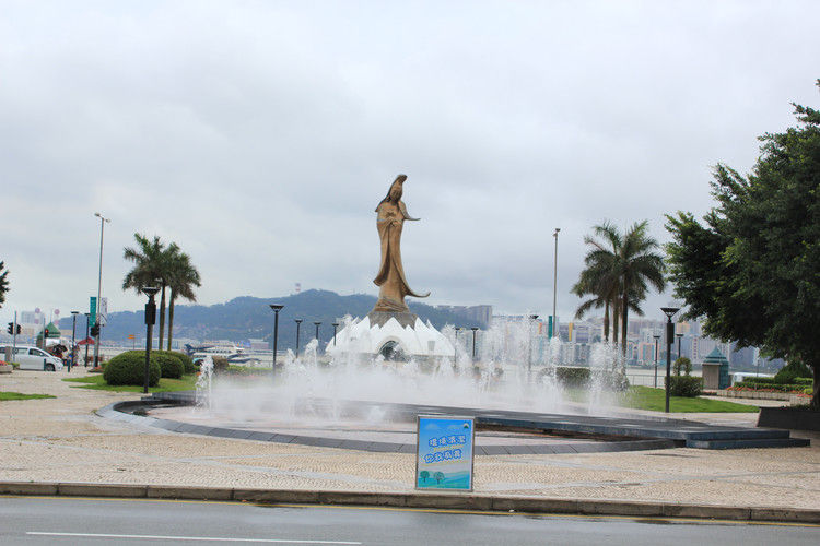 觀音蓮花苑于1997年由澳葡政府策劃興建,1999年3月21日正式揭幕。 觀音蓮花苑為葡萄牙設(shè)計(jì)師李潔蓮(Cristina Rocha Leiria)設(shè)計(jì),版權(quán)所有山東聊城聊之旅國(guó)際旅行社有限公司,轉(zhuǎn)載必究!后期由中國(guó)南京的晨光集團(tuán)公司鑄制,再將47年散件在現(xiàn)址安嵌。觀音像面容的方向是經(jīng)由風(fēng)水師精確測(cè)算而決定,顯示觀音正翻越松山并走向位于美副將大馬路的觀音堂。