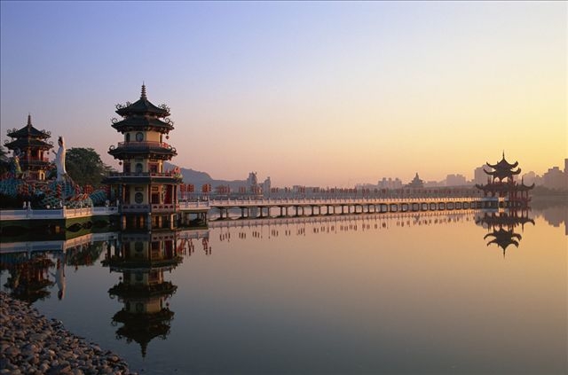 澄清湖位于高雄的鳥松鄉(xiāng),是高雄第一大湖,舊名“大埤湖”或“大貝湖”,媲美大陸的西湖,也是重要的水源地和風(fēng)景區(qū)。梅隴春曉、曲橋釣月步入巍峨的觀光大門一眼就見到兩座紅色中國(guó)式宮殿建筑,左邊的是淡水館,右為海水館。