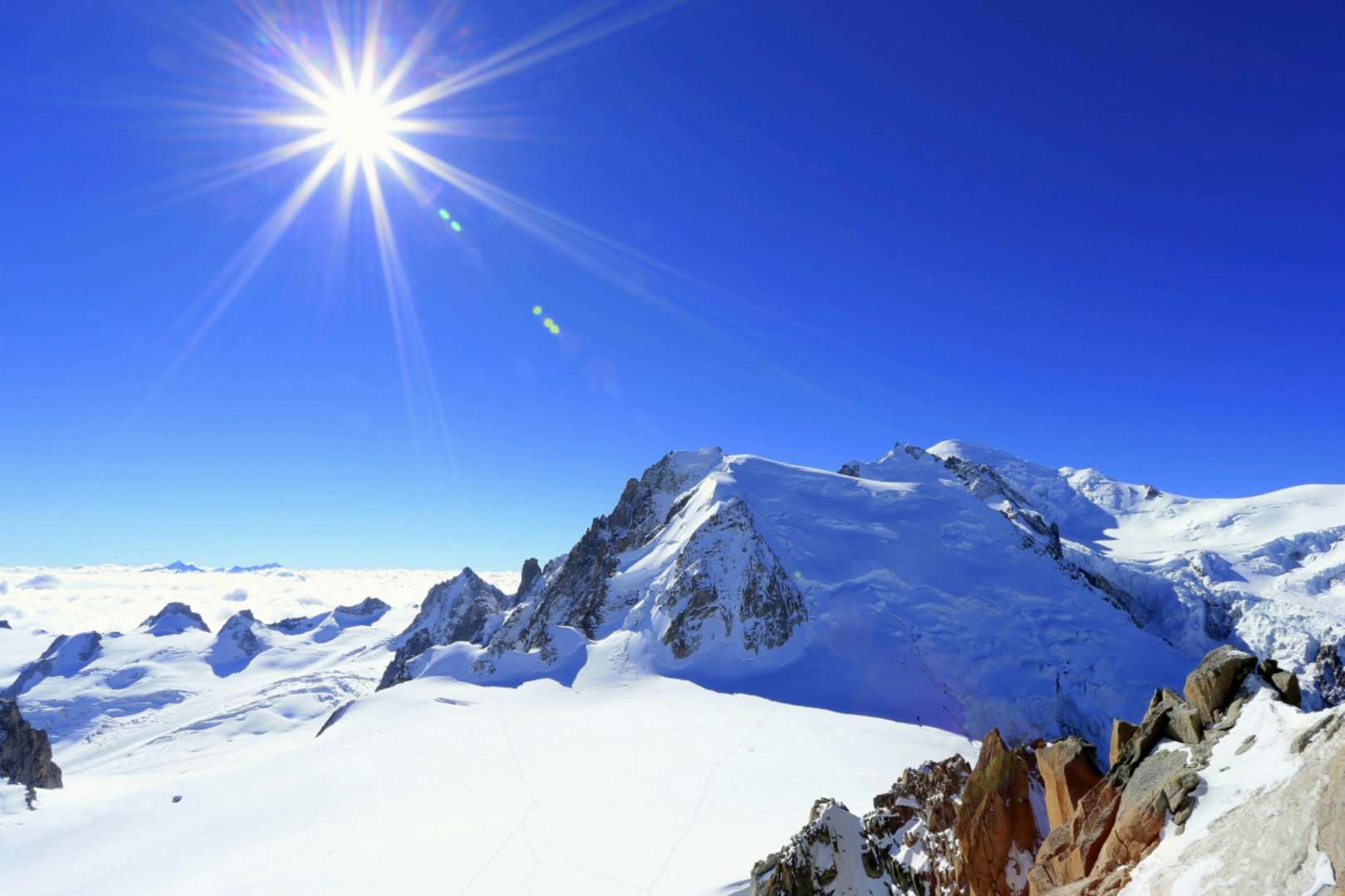 海拔4810米,是阿爾卑斯山的最高峰,位于法國的上薩瓦省和意大利的瓦萊達奧斯塔的交界處,它是西歐的最高峰,由Jacques Balmat和Michel-Gabriel Paccard于1786年首登。