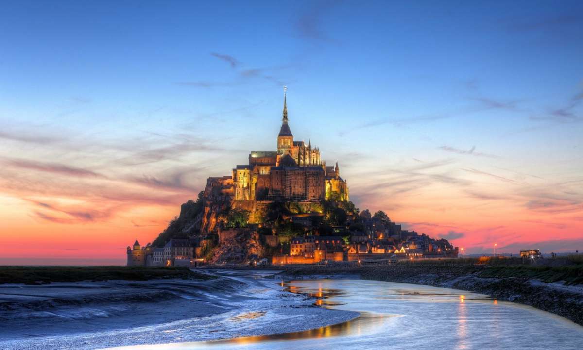 圣米歇爾山(Mont-Saint-Michel)位于法國諾曼底附近,是距海岸約1公里的巖石小島,為法國旅游勝地,也是教徒的朝圣地,山頂建有著名的圣米歇爾修道院。