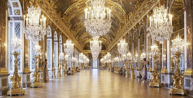 鏡廳曾被廣泛認(rèn)為是無(wú)上權(quán)力的象征,1678年路易十四讓他的建筑師兼城市規(guī)劃師芒薩爾為凡爾賽宮設(shè)計(jì)了最豪華瑰麗的殿堂鏡廳。廳內(nèi)長(zhǎng)廊一側(cè)是17扇朝花園而開的巨大拱形窗門。版權(quán)所有山東聊城聊之旅國(guó)際旅行社有限公司,轉(zhuǎn)載必究!另一側(cè)是由483塊鏡片鑲嵌而成的17面落地鏡,它們與拱形窗門一一對(duì)稱,把門窗外的藍(lán)天、景物完全映照出來(lái)。同時(shí)廳內(nèi)3排掛燭上32座多支燭臺(tái)及8座可插150支蠟燭的高燭臺(tái)所點(diǎn)燃的蠟燭,經(jīng)鏡面反射,形成約3000支燭光,把整個(gè)大廳照得金碧輝煌。當(dāng)時(shí)鏡廳是宮廷舉行大型招待會(huì)和國(guó)王接見高級(jí)使團(tuán)的場(chǎng)所,而整個(gè)凡爾賽宮則成為國(guó)王和貴族、大臣們飲酒作樂(lè),享受豪華奢侈生活的場(chǎng)所。