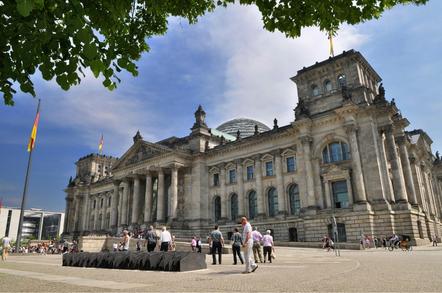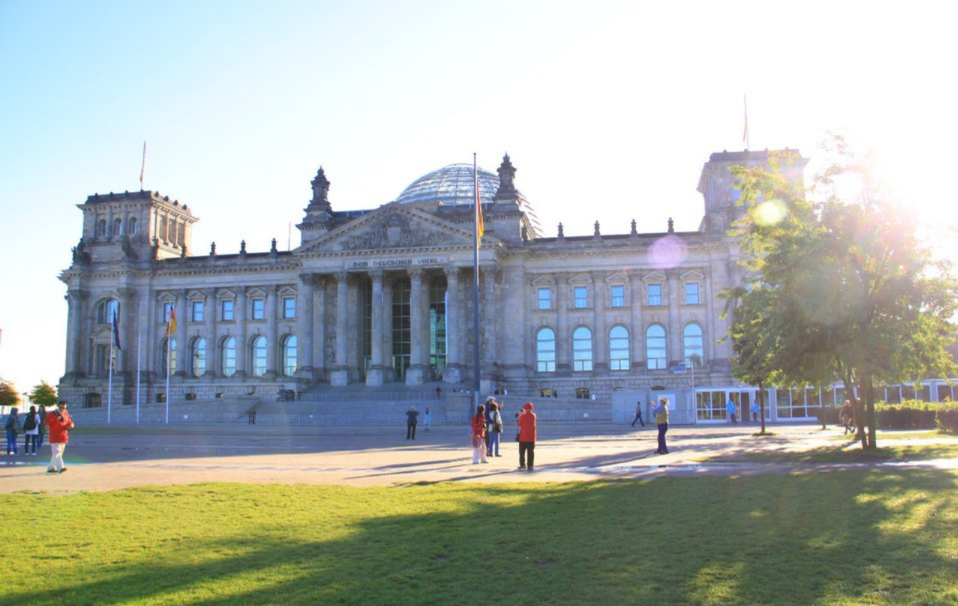 柏林的德國(guó)國(guó)會(huì)大廈建于1884年,由德國(guó)建筑師保羅·瓦洛特設(shè)計(jì),采用古典主義風(fēng)格,最初為德意志帝國(guó)的議會(huì)。1918年11月9日,議員菲利普·沙伊德曼通過(guò)國(guó)會(huì)大廈的窗口宣告共和國(guó)的成立。1933年2月27日大廈失火,部分建筑被毀,失火原因不明。“國(guó)會(huì)縱火案”成為納粹統(tǒng)治者迫害政界反對(duì)派人士的借口。二戰(zhàn)中,大廈遭到嚴(yán)重毀壞。1945年4月30日,蘇聯(lián)紅軍把紅旗插上國(guó)會(huì)大廈的屋頂,宣布了反法西斯戰(zhàn)爭(zhēng)的勝利。1961至1971年間,大廈按保羅·鮑姆加藤的設(shè)計(jì)方案重建。重建的國(guó)會(huì)大廈對(duì)建筑進(jìn)行了簡(jiǎn)化,省去了1945年被炸掉的大廈圓頂部分。這座曾位于柏林墻邊界上的大廈內(nèi)曾辦有“德國(guó)歷史問(wèn)答”展覽。該展覽遷至德國(guó)大教堂中。兩德統(tǒng)一之后,德國(guó)聯(lián)邦議會(huì)決定重新遷入國(guó)會(huì)大廈。1990年10月3日德國(guó)人民在國(guó)會(huì)大廈前慶祝了國(guó)家的重新統(tǒng)一,同年12月20日,第一屆全德聯(lián)邦議會(huì)確定柏林為統(tǒng)一德國(guó)的首都,國(guó)會(huì)大廈則被定為德國(guó)聯(lián)邦議院所在地。1994年至1999年,諾曼·弗斯特爵士以大廈最初的規(guī)模為藍(lán)本設(shè)計(jì),對(duì)國(guó)會(huì)大廈進(jìn)行了重新修建,建成為一座現(xiàn)代化的議會(huì)辦公大樓,新建的穹形圓頂供人游覽。1994年修復(fù)工程開(kāi)始之前,國(guó)會(huì)大廈曾成為全歐洲最引人注目的藝術(shù)品。德國(guó)聯(lián)邦議院于1998年底遷入國(guó)會(huì)大廈,1999年在此選舉下一任聯(lián)邦總統(tǒng)?,F(xiàn)曾讓人爭(zhēng)議一時(shí)的穹形圓頂已成為柏林城的新標(biāo)志。
