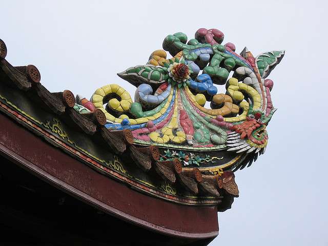 拜庭兩旁古榕參天,大雄寶殿雕塑技術(shù)高超,尤其是粱槽間的24尊飛天樂伎,在中國國內(nèi)古建筑中罕見。殿前月臺須彌座的72幅獅身人面青石浮雕,殿后廊的兩根古婆羅門教青石柱,同為明代修殿時從已毀的元代古印度教寺移來。大殿內(nèi)用近一百根海棠式巨型石柱支撐殿堂,俗稱"百柱殿",殿內(nèi)供奉的五方佛像,法相莊嚴,是漢地少有的密宗軌制。大雄寶殿之后的甘露戒壇,系中國現(xiàn)存三大戒壇之一,壇之四周立柱斗拱和鋪作間的24尊木雕飛天。