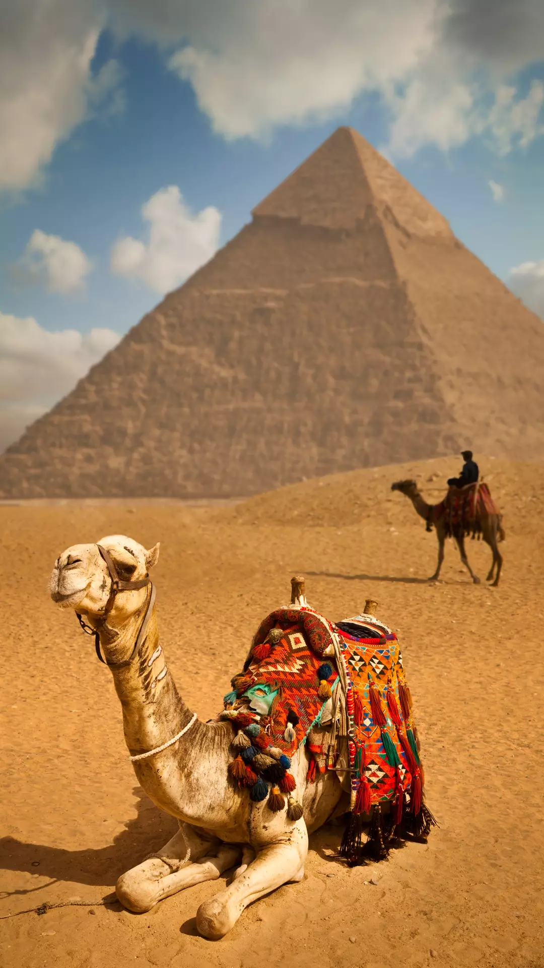 金字塔在埃及和美洲等地均有分布,古埃及的上埃及、中埃及和下埃及,今蘇丹和埃及境內(nèi)。現(xiàn)在的尼羅河下游,散布著約80座金字塔遺跡。 大小不一,其中最高大的是胡夫金字塔,高146.5米,底長(zhǎng)230米,共用230萬(wàn)塊平均每塊2.5噸的石塊砌成,占地52000平方公尺。石塊之間沒(méi)有任何黏著物,靠石塊的相互疊壓和咬合壘成。國(guó)王哈佛拉的金字塔前,還矗立著一座象征國(guó)王權(quán)力與尊嚴(yán)的獅身人面像。埃及金字塔是古埃及的帝王(法老)陵墓。世界七大奇跡之一。數(shù)量眾多,分布廣泛。開(kāi)羅西南尼羅河西古城孟菲斯一帶的金字塔是占有集中的一部分。