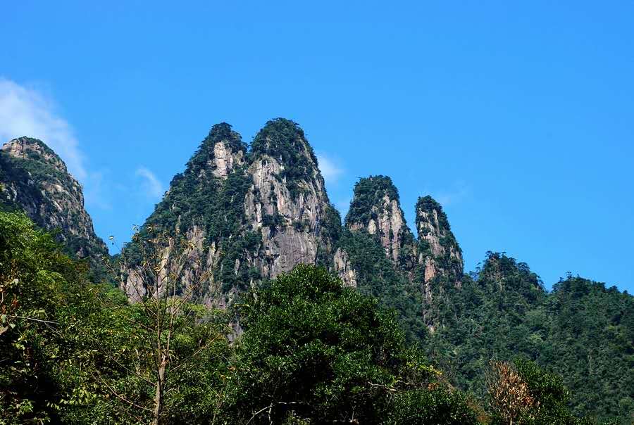 五指峰(井岡山主峰杜鵑山)山峰并列如五指,因而得名,位距茨坪西南六公里,海拔1586米。是井岡山的象征。井岡山革命根據(jù)地紀(jì)念章和一百元人民幣背面主景,就是以她的模樣繪制而成的,故有中國最值錢的山峰之稱,有人說到此一游必將帶來滾滾之財源。這里山高林密,地域?qū)掗?。山洞遍野,回旋余地大,是歷來兵家藏龍伏虎之地。