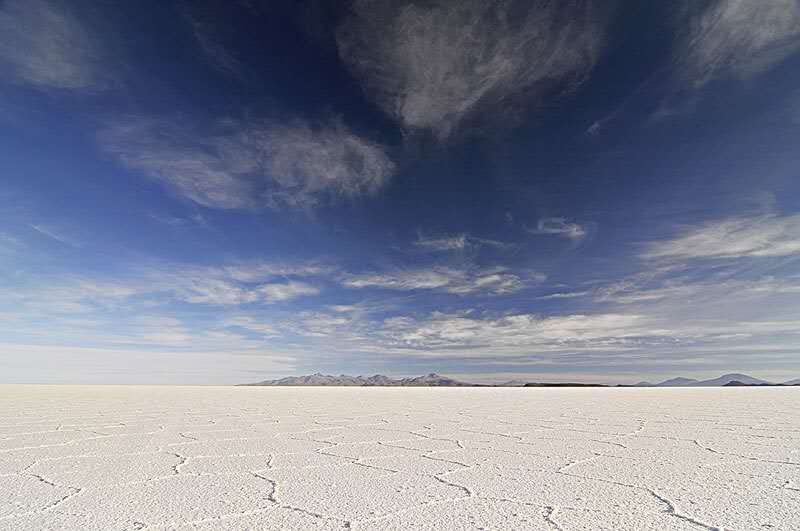 烏尤尼鹽沼在玻利維亞波托西省西部高原內(nèi),海拔3,656米(11,995英尺),長(zhǎng)150公里,寬130公里,面積9,065平方公里,為世界最大的鹽層覆蓋的荒原,有“天空之鏡”的美稱(chēng)。
