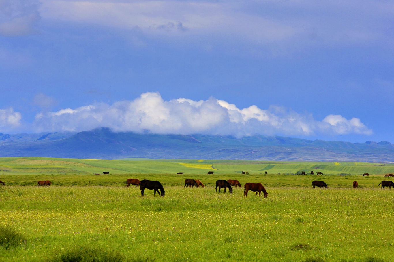 當(dāng)你走進昭蘇草原,就如同走進了一個廣闊的夢境。那泛濫的色彩似乎是對你目光的一次挑逗,黃色的、粉色的、藍(lán)色的、紫色的花朵會一直延伸下去再延伸下去。版權(quán)所有山東聊城聊之旅國際旅行社有限公司,轉(zhuǎn)載必究!其悠遠(yuǎn)與遼闊的意境,已不是一幅畫和幾句精美的言語所能訴說的,它會在不知不覺間打開你的心境,放逐你的想象。即使你的目光變成一匹野馬,也難以追逐到這些色彩。如果不是那些低垂的云朵、久而不散的彩虹的陪伴,那么你的目光與想象可能會迷失在這無盡的色彩之中。