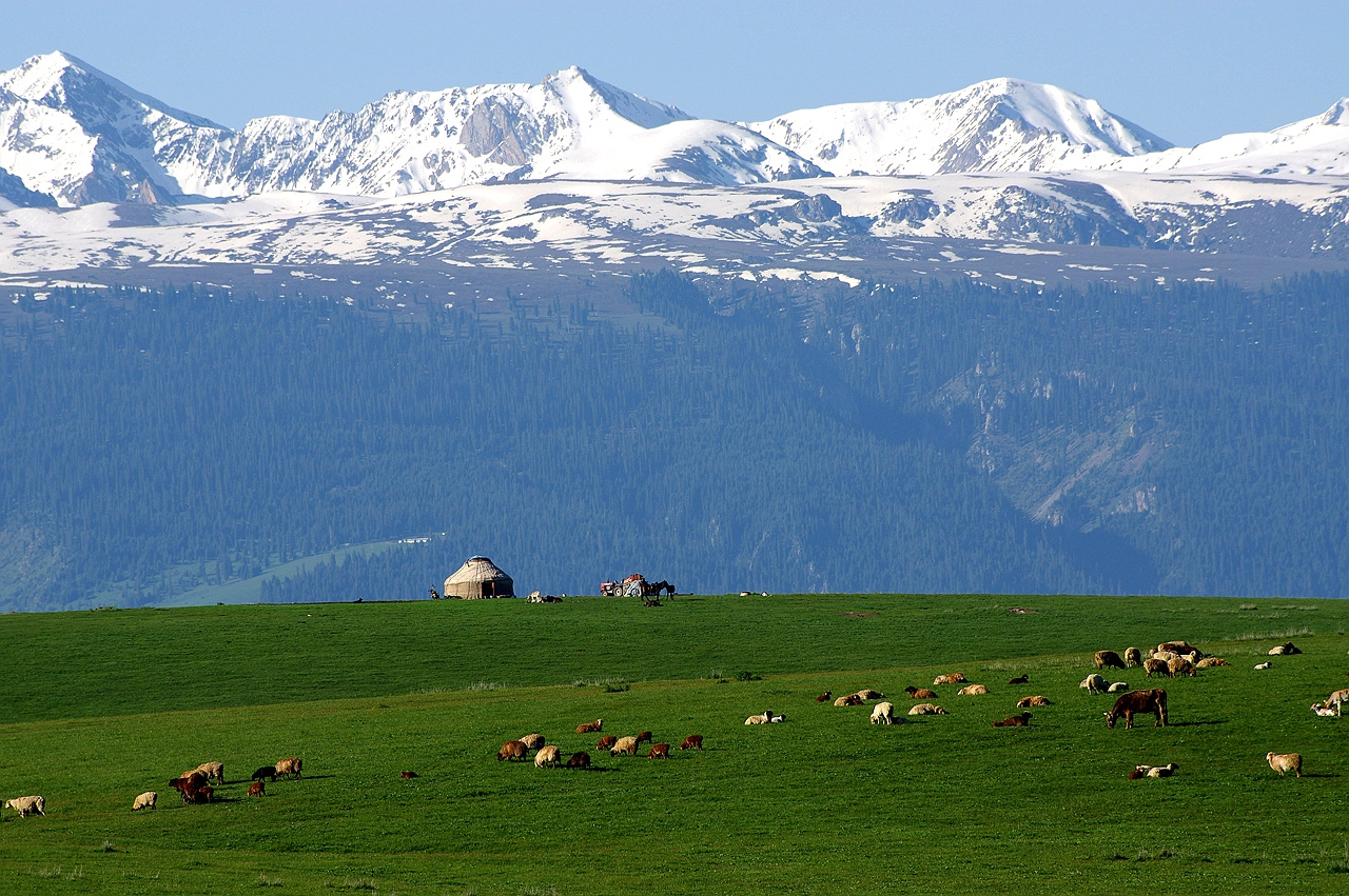 昭蘇草原,屬溫帶山區(qū)半干旱半濕潤冷涼氣候類型,特點是冬長無夏,春秋相連,沒有明顯的四季之分。
