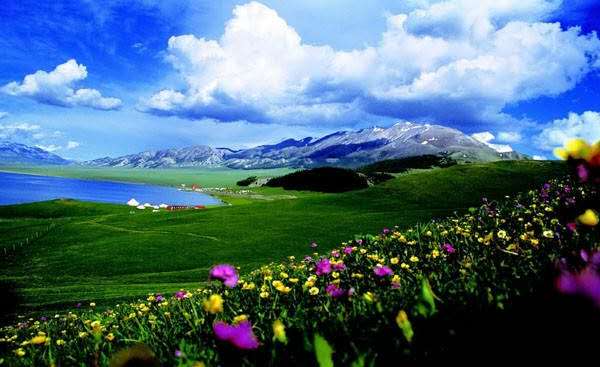 流泉瀑、溪水淙淙;奇特的阿爾斯郎石林,壯觀的草原落日;冰峰雪嶺倒映在靜寂幽深的高山湖泊之中。溫?zé)崆逅臏厝?,藍(lán)藍(lán)的天,綠茵茵的草坂,每時(shí)每刻給人以美的享受。