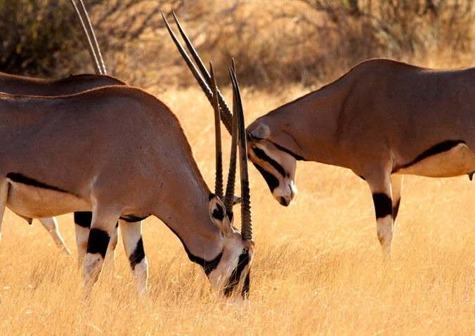 從肯尼亞雪山上流經(jīng)到地勢低的桑布魯?shù)囊镣咚髂崃_河(EwasoNyiro)是桑布魯?shù)纳?,?dāng)?shù)厝朔Q之為桑布魯之水(WaterSamburu),因?yàn)樗念伾首厣址Q之為棕色的水(Brown;Water),也正是因?yàn)檫@條寶貴的支流,給干旱的桑布魯增色不少,在這里,隨處可見成群的大象在河邊嬉戲,鱷魚在泥水里懶洋洋的沐浴日光浴,成群的河馬匍匐在河中,當(dāng)然這些動(dòng)物在肯尼亞其他地區(qū)也可以看到,但是桑布魯所特有的五大動(dòng)物(BIGFIVE)是極其罕見的,葛式細(xì)紋斑馬(Brevyzebra),東非劍羚(Beisaoryx),藍(lán)腿索馬里鴕鳥(Somaliostrich),網(wǎng)狀長頸鹿(Reticulatedgiraffe),長頸羚(Gerenuk)。這里多達(dá)380余種的鳥類同樣吸引著鳥類學(xué)家的眼球,象犀鳥,非洲食魚鷹等。
