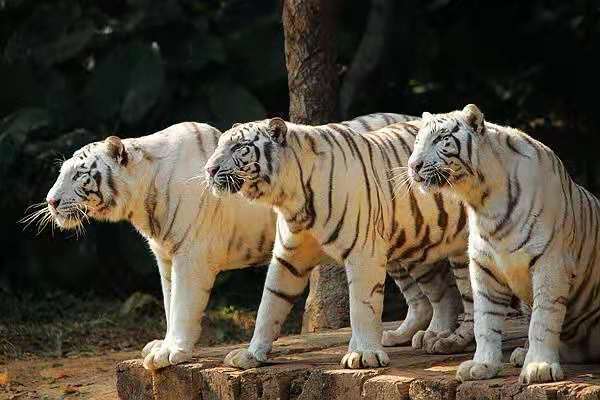 白虎是長隆野生動物世界的鎮(zhèn)園之寶,也是長隆集團(tuán)的吉祥物。目前長隆野生動物世界已經(jīng)擁有超過150多只白虎,是世界上白虎最多的園區(qū),被稱為世界白虎王國也當(dāng)之無愧。除了白虎,還有華南虎、金虎、銀虎以及孟加拉虎和東北虎等六大虎種多達(dá)300多只老虎生活在長隆野生動物世界。生態(tài)虎園在生活區(qū)域住著金虎、白虎、銀虎、孟加拉虎、華南虎以及東北虎等,每個虎種有自己的單獨生活區(qū)域,生活區(qū)內(nèi)巨石假山,流水潺潺,百分百的模擬老虎的野外生活環(huán)境。根據(jù)老虎生活習(xí)性的不同,加以細(xì)微的變化,比如華南虎和東北虎的體型和生活環(huán)境都有巨大的不同,所以在場館的設(shè)計建設(shè)上,也根據(jù)這些差異做到“虎”性化“虎”居,讓老虎們安居長隆野生動物世界。在金虎山則可以目睹世界罕見的金虎、銀虎。