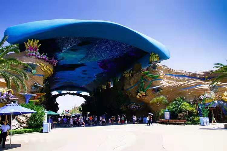 走進(jìn)海洋館,猶如置身神奇的海底世界,游客們在弧形水下長廊內(nèi),可以看到成千上萬的珍稀魚類在身邊游曳,五光十色的圓形穹頂折射出美麗的光線,帶來非常獨(dú)特的游覽體驗(yàn)。海洋館飼養(yǎng)有不同品種的珍奇魚類多達(dá)15000條,最為震撼的是館內(nèi)安裝的世界最大亞克力玻璃,長39.6米,高8.3米,厚0.65米,通過領(lǐng)先全球的先進(jìn)技術(shù)無縫連接,視界壯闊,從不同的角度為游客近距離展現(xiàn)無敵海底奇觀,還可以和直徑達(dá)4米的蝠鲼(魔鬼魚)親密接觸。