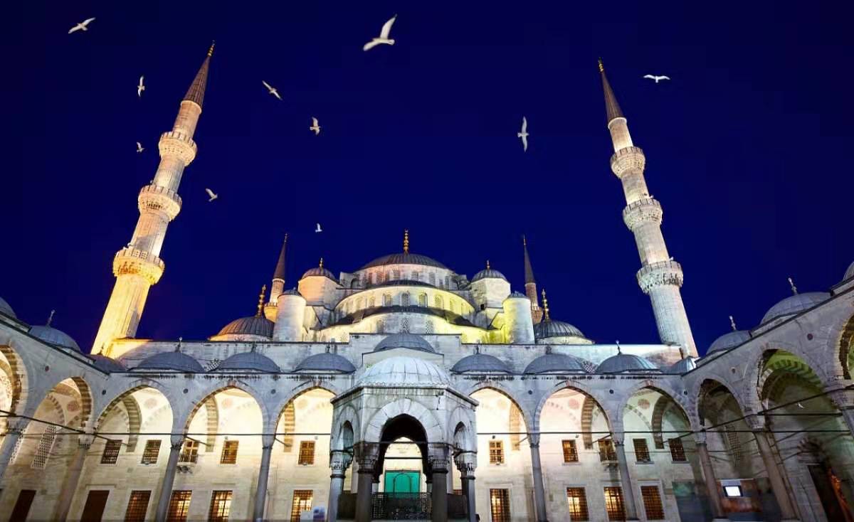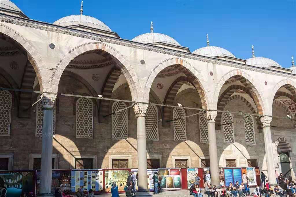 1617年,清真寺完工。它是奧斯曼帝國(guó)時(shí)代建筑和藝術(shù)的輝煌杰作。這是拜占庭的希臘文化和奧斯曼土耳其的突厥伊斯蘭教文化相結(jié)合的建筑,運(yùn)用的是拜占庭帝國(guó)希臘文化的建筑技術(shù)來表現(xiàn)伊斯蘭教文化,如果沒有四周的六座叫拜塔,那么他就會(huì)被看成一座東正教教堂,這也是巴爾干半島上信仰東正教的各國(guó)的建筑方式,是拜占庭帝國(guó)(東羅馬帝國(guó))所遺留下來的寶貴的非物質(zhì)文化遺產(chǎn)。