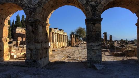 希拉波利斯的羅馬城鎮(zhèn)廢墟便在這個(gè)遺址附近,包括劇院、許多陵墓和一些老的溫泉浴場(chǎng)。