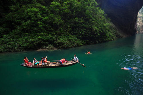 中法探險(xiǎn)隊(duì)歷經(jīng)十年考察宣布,奉節(jié)龍橋河至恩施大峽谷的地下暗河全長(zhǎng)50千米,為世界之最。僅暗河之上的豎井就有108個(gè),形似著名的新疆坎兒井,非常壯觀(guān)和罕見(jiàn)。