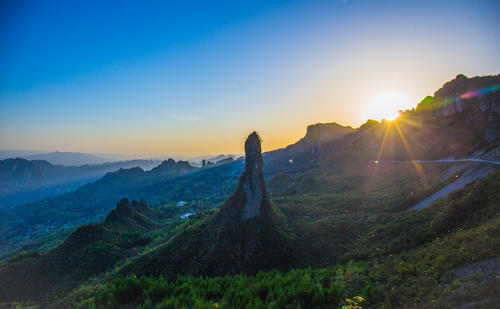 “一炷香”,高約150余米,最小直徑只有4米,此地的巖石的抗壓強(qiáng)度是800千克每立方厘米,它風(fēng)吹不倒,雨打不動(dòng),傲立群峰之中千萬(wàn)年,守護(hù)著這片神秘的土地。他近觀(guān)猶如男根,展示著他威武的雄姿,儼然成了大峽谷中的鎮(zhèn)谷之寶。反映一炷香的美術(shù)作品眾多,以中國(guó)博物館協(xié)會(huì)會(huì)員、國(guó)家一級(jí)美術(shù)師、全國(guó)“畫(huà)中華名人故居第一人”、著名畫(huà)家拇指先生的《陳連升故里 鎮(zhèn)谷之寶一炷香》最為有名。相傳,這根石柱是天神送給當(dāng)?shù)匕傩盏囊桓y香,如遇災(zāi)難將他點(diǎn)燃,天神看到寥寥青煙,就會(huì)下凡來(lái)救苦救難,所以當(dāng)?shù)匕傩辗Q(chēng)它為“難香”,這難香又長(zhǎng)又細(xì),晴空萬(wàn)里時(shí),一朵白云疊在峰頂,遠(yuǎn)遠(yuǎn)看去就像天上的香火,宛若仙境;陰雨天氣時(shí),升起的一層薄霧,就像一縷青紗,將它打扮得若隱若現(xiàn),嫵媚動(dòng)人。從地質(zhì)學(xué)上講,由于長(zhǎng)江水系、清江水系長(zhǎng)期交錯(cuò)的影響,不斷地侵蝕,不斷地沖刷,才形成如今陡峭的石柱,由于保存極度困難,所以地球上類(lèi)似細(xì)長(zhǎng)的石柱并不多見(jiàn),而最長(zhǎng)最大的莫過(guò)于此。