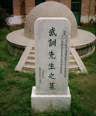 1896年6月4日(光緒22年4月23日巳時(shí)),武訓(xùn)先生在臨清御史巷義學(xué)房檐,側(cè)身而臥,聽著孩子的瑯瑯讀書聲,面露微笑,離開了人間,享年59歲。遵照遺囑,由其侄克信引薄柩葬于此地,當(dāng)時(shí)為土丘。1937年,由何思源監(jiān)工,重修武墓,改為水泥丘。1966年9月,“造反派”扒墳掘墓,碎尸粉骨。據(jù)目擊者回憶武訓(xùn)尸骨較長,沒有任何陪葬平,頭骨上有一縷頭發(fā)。1989年4月,武訓(xùn)紀(jì)念館籌建小組按原方位與形狀重新修建,墓碑由徐云北題。