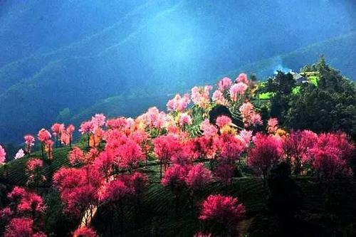 無量山櫻花谷,位于云南大理州南澗縣無量鎮(zhèn)德安村委會(huì)境內(nèi),每年11月底或12月初(根據(jù)氣候),花期25天左右,櫻花谷面積約2000畝。
