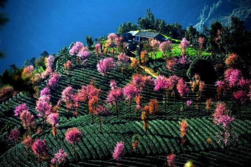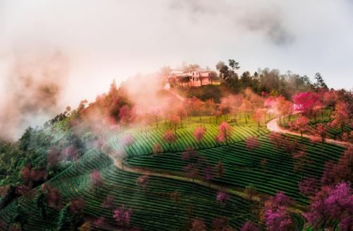 南澗縣無量山櫻花谷,在無量山國(guó)家級(jí)自然保護(hù)區(qū)周邊,與靈寶山國(guó)家森林公園相鄰,距離縣城51公里。北緯24°45' 50" 東經(jīng) 100°30' 32" ,海拔2175米。每年11月底至12月,間植在茶園中的冬櫻花競(jìng)相開放,構(gòu)成一幅無量山櫻花谷人間仙境。櫻花谷面積約2000畝,成三片分布。櫻花谷免費(fèi)為游客開放,不收費(fèi),景區(qū)配備有觀景臺(tái),衛(wèi)生間、餐飲、住宿等設(shè)施,是集觀光、旅游、攝影為一體的旅游景區(qū),是攝影愛好者的天堂。