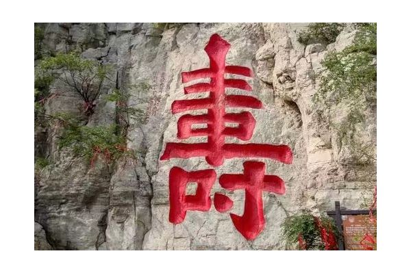 山陰處海內(nèi)外罕見的巨大鐫刻"壽"字是“壽比南山”典故的出處,該字結(jié)構(gòu)嚴謹,端莊大方,坐南朝北,通高7.5米,寬3.7米,單是下部的"寸"字就高2.22米,為大個頭的漢子所不及,故當?shù)赜?壽比南山"、"人無寸高"之說。這個"壽"字是明嘉靖年間衡王府內(nèi)掌司冀陽周全所獻書。端詳此"壽",字體揮灑俊逸,筆劃圓泣流暢,雖千鑿百斧雕成,卻不露分毫痕跡,充分體現(xiàn)了勞動人民的聰明智慧,是書法石刻藝術(shù)的瑰寶。自此,青州官民,朝野上下,去云門山拜壽的人絡(luò)繹不絕,已有400余年的歷史了。眾從的中外游客都把能到云門山參拜大壽字作為自己最大的心愿。