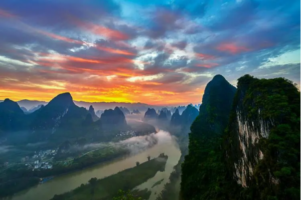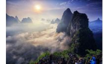 相公山位于陽(yáng)朔縣興坪鎮(zhèn)內(nèi),距陽(yáng)朔約28公里,距桂林約57公里。登上相公山舉目遠(yuǎn)眺,群峰排列有序,蜿蜒流淌的漓江甚是美妙。這里的云海、日出、光影、彩霞吸引著無(wú)數(shù)攝影愛(ài)好者和攝影家。前往相公山有陸、水兩條路可行,可以從陽(yáng)朔或者桂林到葡萄或白沙下車(chē)后再租車(chē)直接到達(dá)山腳下,也可從陽(yáng)朔直接租車(chē)或自駕車(chē)經(jīng)白沙往右朝古板方向走到達(dá)拍攝地。水路從興坪租船經(jīng)過(guò)黃布灘到達(dá)山腳下,在步行上山。登相公山一般都要再天亮前爬到山頂,拍攝日出、云海、彩霞