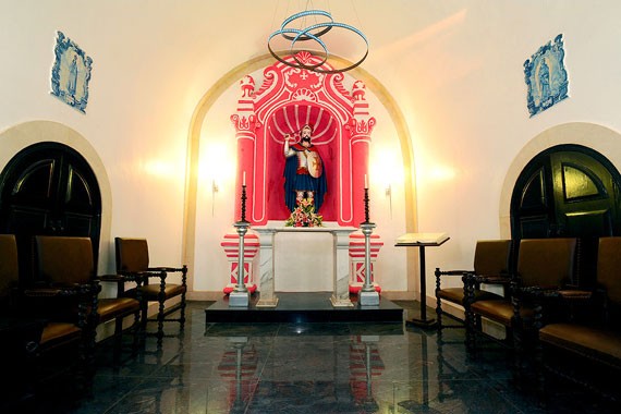 這座精致的小堂于1629年興建,于1740年重建于媽閣炮臺(tái)上, 即在澳門這個(gè)小城的尾端。當(dāng)時(shí),小教堂巳是一所葡式旅館建筑物的一部份,而旅館則建于炮臺(tái)的地基上,在這座精致的小教堂擺放圣人雕像及花地瑪圣母,伊莎貝皇后的瓷磚圖像。