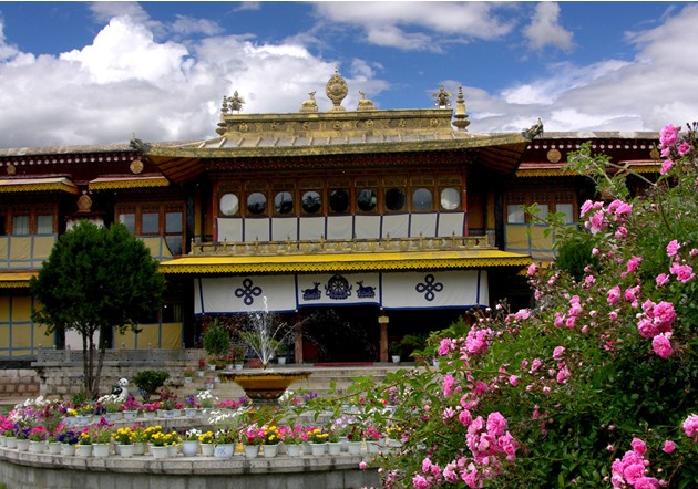 1922年,十三世達(dá)賴對羅布林卡再興土木,在園林西側(cè)建金色頗章宮、格桑德吉宮、其美曲吉宮,在西南建金色林卡,并種植大量花草樹木。