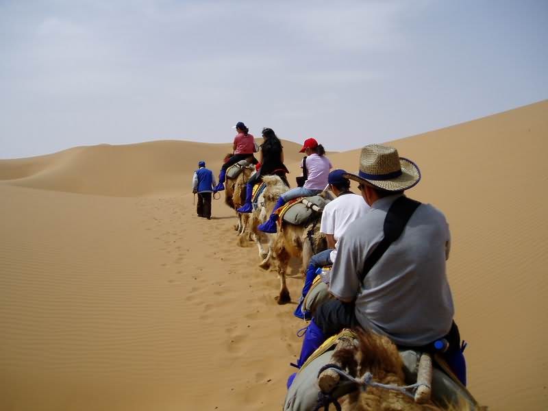 走進大漠有車道、步行道,還有駝道、游客可自由選擇。在此處,景區(qū)備有大漠駝隊,騎駱駝沙漠探險是游人的最佳選擇。騎著“沙漠之舟”,沿著古絲綢之路駝道、鹽道和商道慢行,耳聽陣陣駝鈴,縱觀海潮沙景,悠然自得,愜意無比,回味無穿。