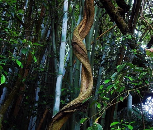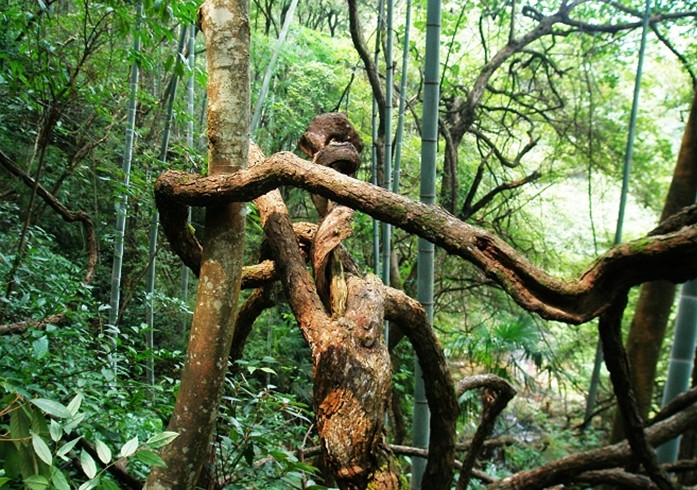 距何仙姑家廟300米處,傳說是何仙姑的絲帶幻化而成。古藤枝干直徑最粗處約150厘米,延伸跨度30多米,覆蓋面積近500平方米,是由青藤繞著一棵古榕和幾棵雜樹繁衍而成,專家認為古藤的學名為“白花魚藤”,是我國稀有的植物。藤比樹粗,遮天蔽日,狂龍巨蟒般盤旋回環(huán),不見首尾,增城政府正在申報世界吉尼斯紀錄大全。