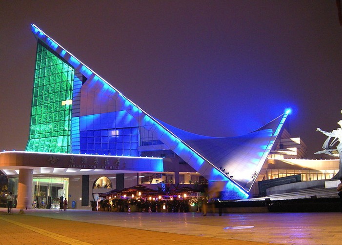 這座以人民音樂家冼星海的名字命名的音樂廳,占地 1. 4 萬平方米 ,建筑面積1. 8 萬平方米 ,設有1518 座位的交響樂演奏大廳、 461 座位的室內(nèi)樂演奏廳, 100 座位的視聽欣賞室,和 4800 平方米 的音樂文化廣場,總投資達 2.5 億元,是我國當時規(guī)模最大,設備最先進,功能完備,具有國際水平的音樂廳。