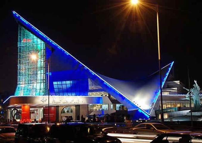 星海音樂廳位于廣州二沙島,造型奇特的外觀,富于現(xiàn)代感,尤如江邊欲飛的一只天鵝,與藍天碧水渾然一體,形成一道瑰麗的風景線。這座以人民音樂家冼星海的名字命名的音樂廳,占地1.4萬平方米,建筑面積1. 8萬平方米,設有1500座位的交響樂演奏大廳、460座位的室內(nèi)樂演奏廳,100 座位的視聽欣賞室,和4800平方米的音樂文化廣場。整體建筑為雙曲拋物面鋼筋混凝土殼體,室內(nèi)不吊天花板,做到建筑空間與聲學空間融為一體。星海音樂廳總投資達2.5億元,是我國目前規(guī)模最大,設備最先進,功能完備,具有國際水平的音樂廳。