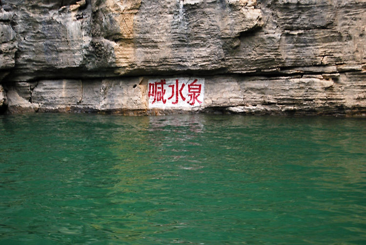 秦王峽東岸有一溶洞,相傳明代有一位姓秦的人,尊皇命于此熬硝監(jiān)制炸藥有功,朝廷封其為秦王,洞遂名“秦王洞”,峽亦名“秦王峽”。峽內(nèi)岸壁陡峭而水流較平緩,千米長(zhǎng)灘,筆直一線(xiàn)。仰望,兩岸山峰高聳,猶似要合抱一般,氣魄十分雄偉;俯看,河水清澈如鏡,偶有魚(yú)群游過(guò),引人競(jìng)相捕捉,激起層層水花,于陽(yáng)光下?tīng)N燦閃耀。
